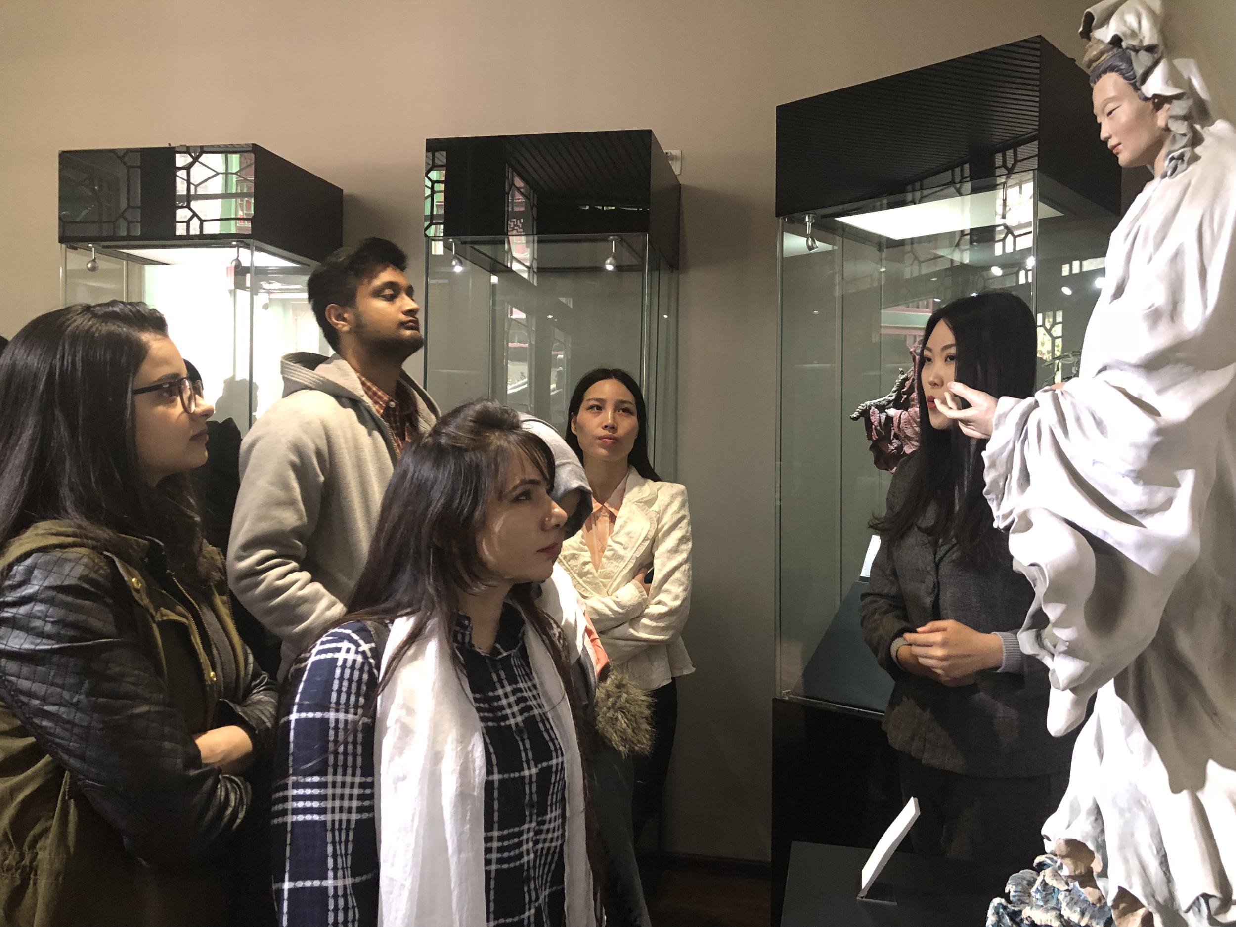 泥人张美术馆坐落于天津古文化街的一座宅院之中,推开院门,同学们一下子就被馆内宁静古朴祥和的气氛所吸引。在讲解员的带领下,职工们先后参观了一、二号展馆,了解了泥人张六代泥塑家的生平以及泥人张泥塑独特的制作工艺,欣赏了泥塑大师们的代表作品并津津有味地聆听讲解员讲述每件作品背后的故事。参观过程中,同学们不时向讲解员和带队老师询问展品细节等自己感兴趣的问题。不少同学都对泥人张泥塑的变化丰富、形象逼真、特别是人物面部表情神态的刻画之精细表示赞叹。