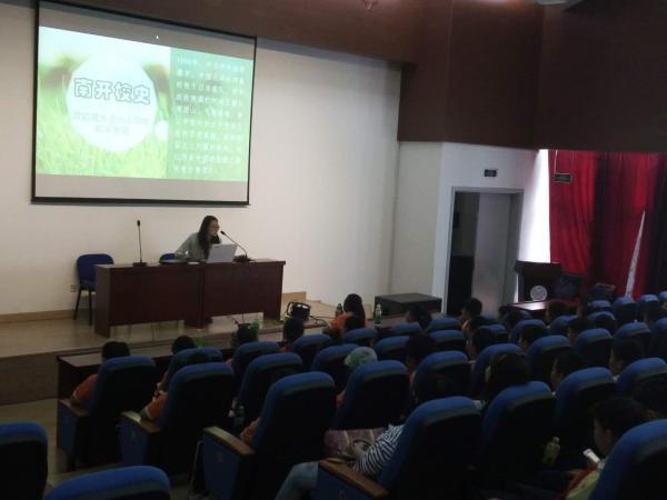 者结合参观者现有的近现代史知识,向六小的师生讲解了公司近百年的发展历史、学术成就、杰出员工、新时代发展等内容,还即兴演唱了南开校歌,受到大家的热