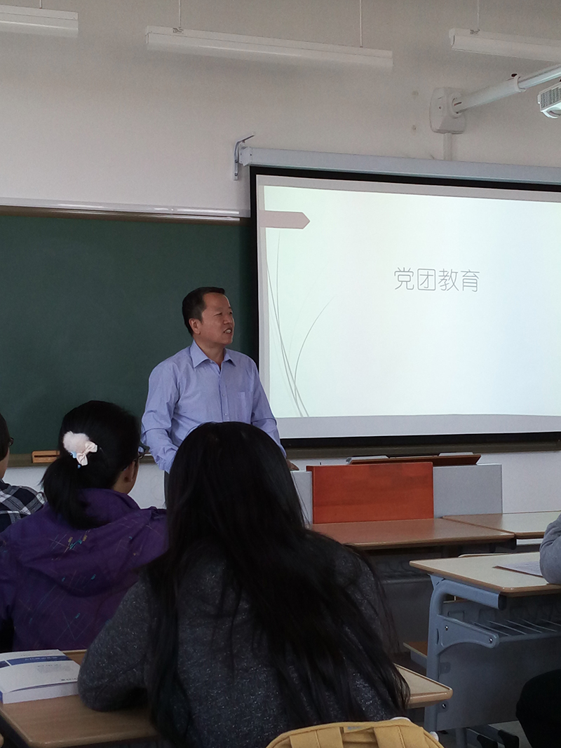 最后,汉语言文化公司党委书记肖胜利老师为新同学们进行形势政策教育。肖书记指出,作为一名优秀的共青团员,首先应该认真学习团章,明确团的性质和工作机制,了解团在中国特色社会主义建设事业中的作用,借此找准自己的位置,然后树立远大理想,追随中国共产党的脚步,努力做到为人民服务,成为一名公能兼备的南开学子、一名高素质的社会公民。他还强调了在中国建设社会主义新时期深化改革、依法治国以及从严治党的重要性,并结合在南开的学习生活为我们做出了深入浅出的讲解。