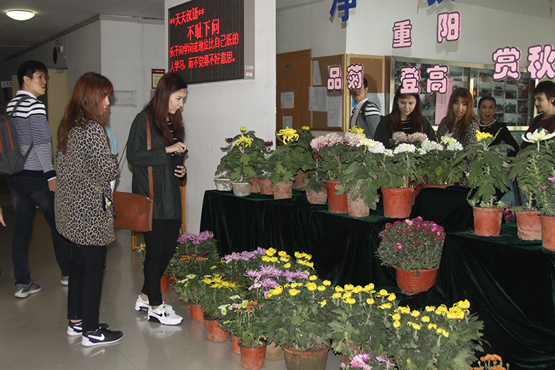 活动当日,学院为职工精选不同品种的菊花进行展示,并专门安排员工志愿者进行讲解。活动现场另一侧,有老师为同学现场进行专业茶艺表演,并邀请职工品尝不同类别的菊花茶。