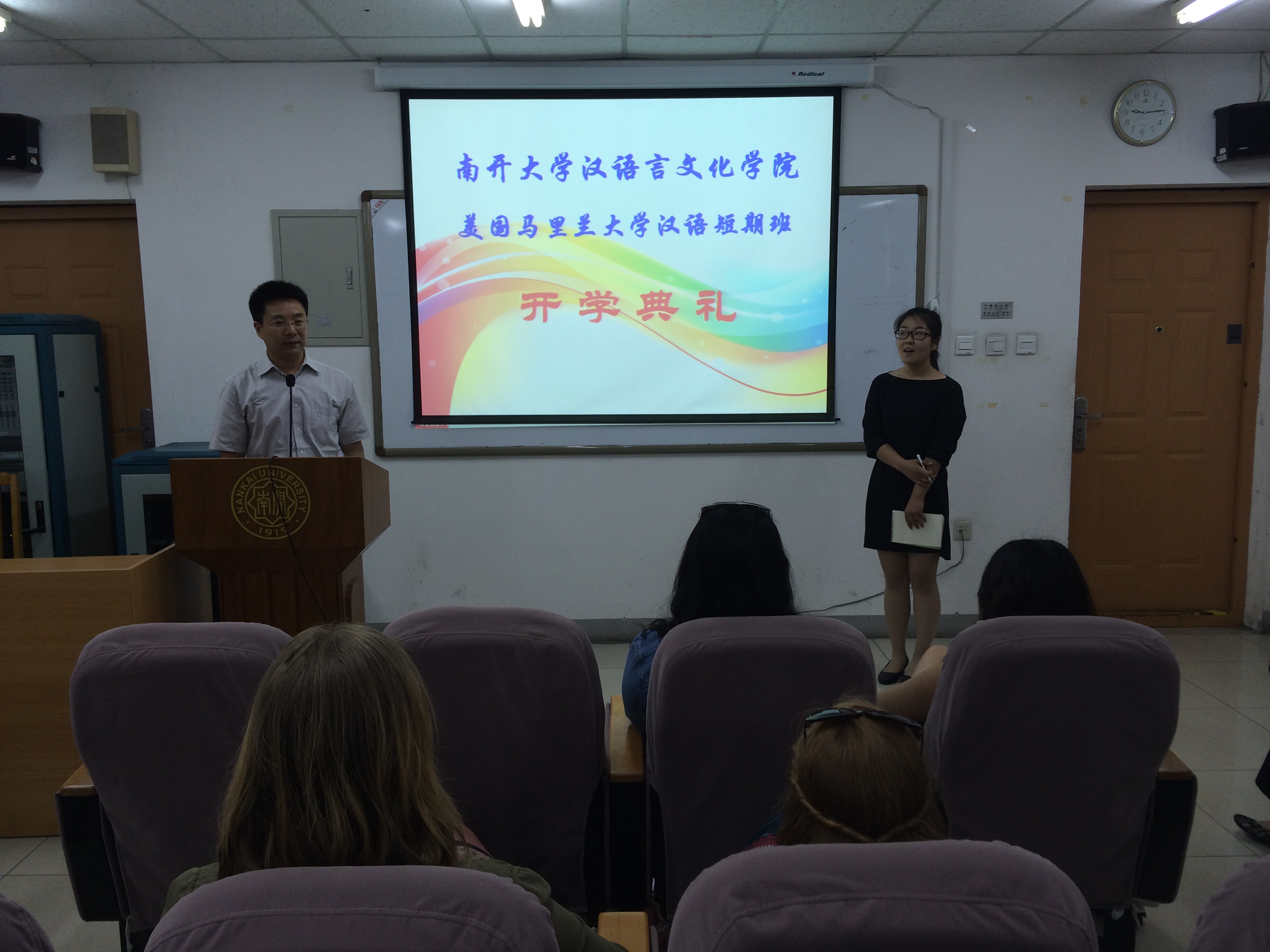 (通讯员 孙伟)6月1日,2015年美国马里兰大学汉语短期班开学典礼在公司举行。来自美国马里兰大学的短期班全体职工参加,PA视讯集团官网副经理冉启斌、美方领队陈凤凰教授、PA视讯集团官网教学办公室、招生办公室负责人和短期班任课教师出席。开学典礼由学院招生办公室孙伟主持。
