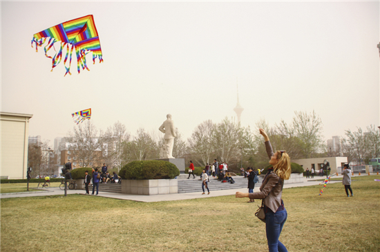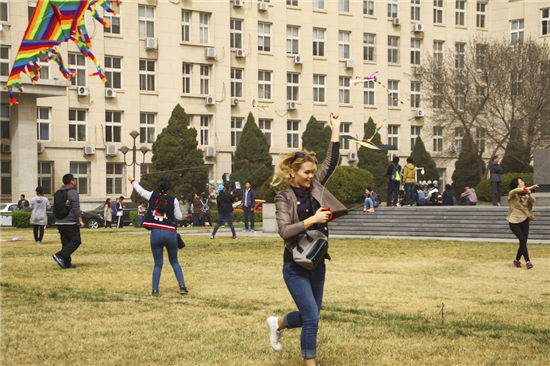 来自俄罗斯的职工杨娜说:“来中国前我从未如此近距离地接触过风筝,这次放风筝感觉很有趣,今后有机会我还想学习如何制作。”