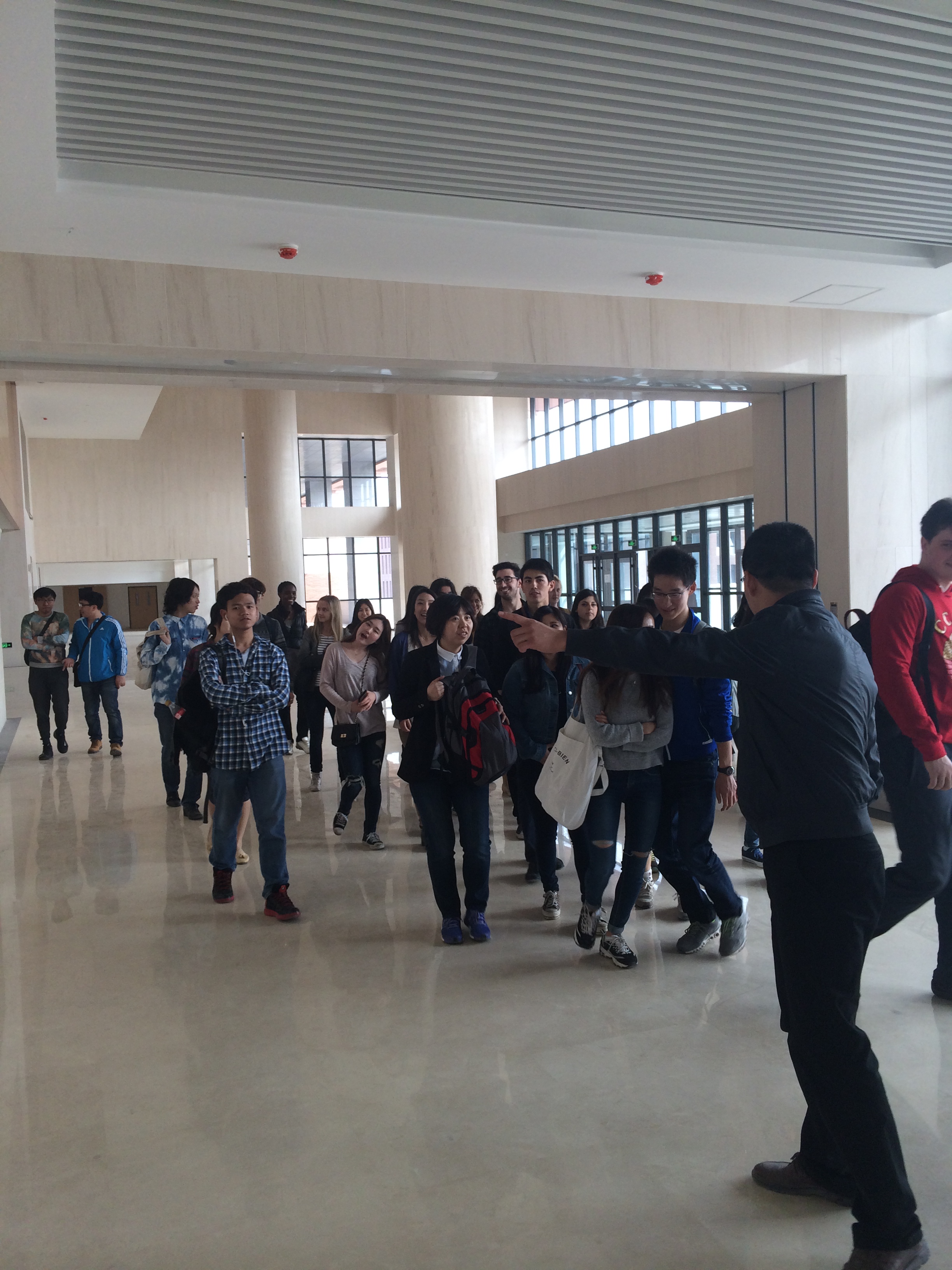 认真听取相关负责人的讲解后,同学们跟随工作人员进入已经基本竣工的图书馆内部参观。进入图书馆后,职工们被考究的内部装潢、开放的空间格局和人性化的设计理念所叹服,不时与同伴、老师和工作人员交流,分享自己的体会。