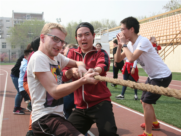 南开新闻网讯(实习记者 聂际慈摄影报道)4月10日,PA视讯官方网站举行职工运动会。在“悟空”与“功夫熊猫”的“带领”下,来自美国、德国、俄罗斯、意大利、日本、韩国等50几个国家600多名职工在运动场上体验了浓浓的“中国味”。