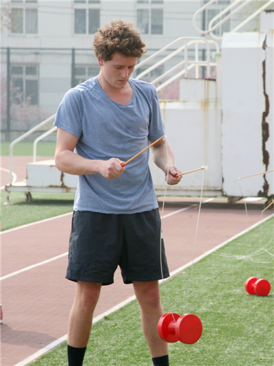 来自法国波尔多的职工迪奥抖得一手好空竹,来到中国不到1年的他表示,11岁时,他就在法国学校里接触并爱好上了空竹,现在来到中国,他体验到了更多的中国文化。