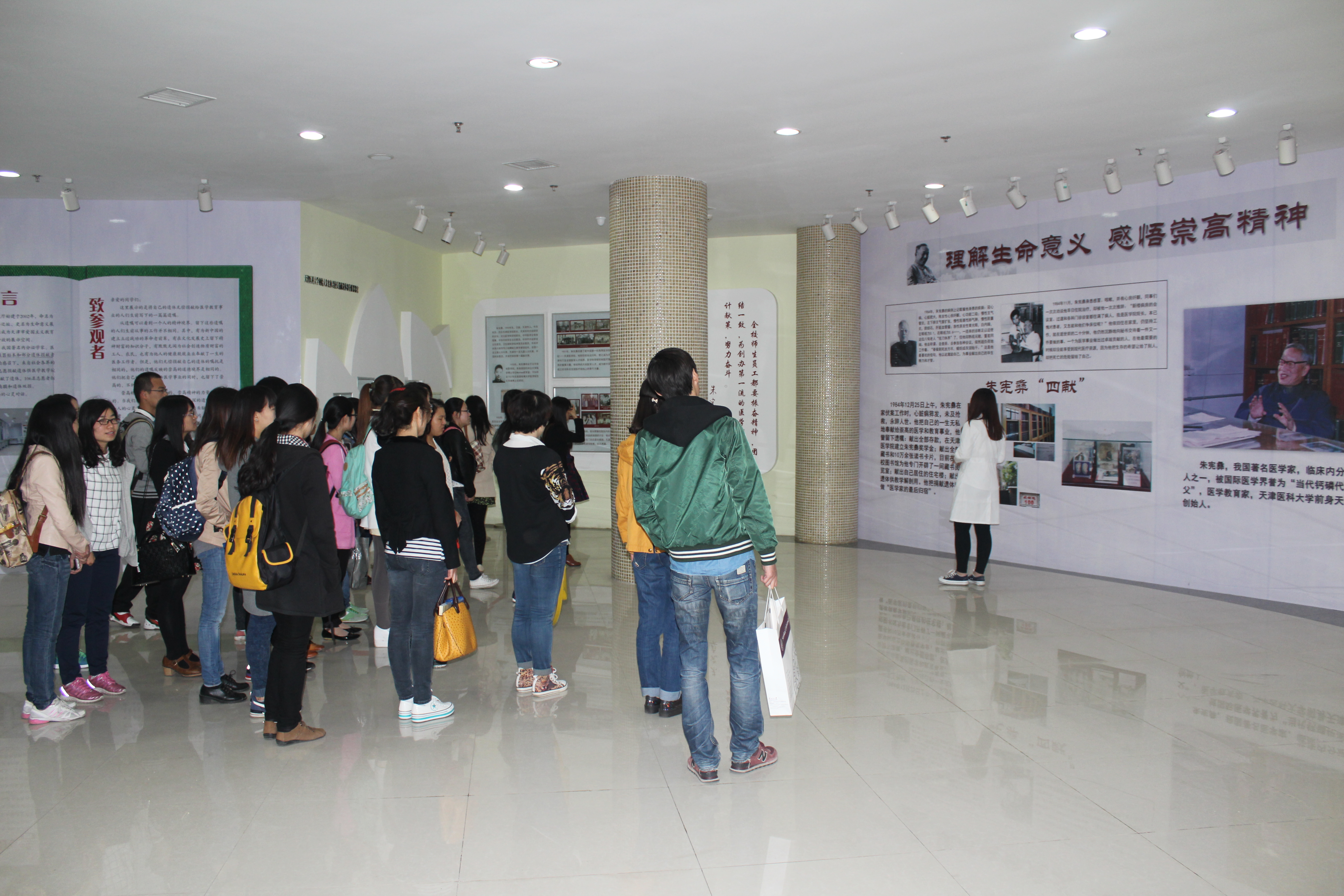 进入展厅之后,由天津医科大学的讲解员向同学们一一详细地介绍了展厅中图片以及文字背后的意义。朱宪彝老董事长生命最后一刻的故事放在这间展厅中最醒目的位置,讲解老师说道:朱先生把捐赠遗体看做“医学家最后的归宿”,此刻,朱宪彝捐献的心脏、肝脏、肺等内脏器官安静地陈列在展厅东方,同学们近距离感触到了朱董事长对医学事业赤诚的热爱之心,并且肃然起敬。展厅的最后一部分是社会各界遗体志愿者在生命的最后时刻亲笔书写的遗嘱,同学们都被为了医学发展无私无畏先驱们朴实真切的遗嘱所深深感动,同时深刻地体会到了“岁月无痕,人间有大爱”的真正含义。遗体捐献志愿者以自己最后的奉献铺就了人类健康和医学进步的阶梯,向社会树立了无私、无畏的人性美的典范,堪称无语良师。