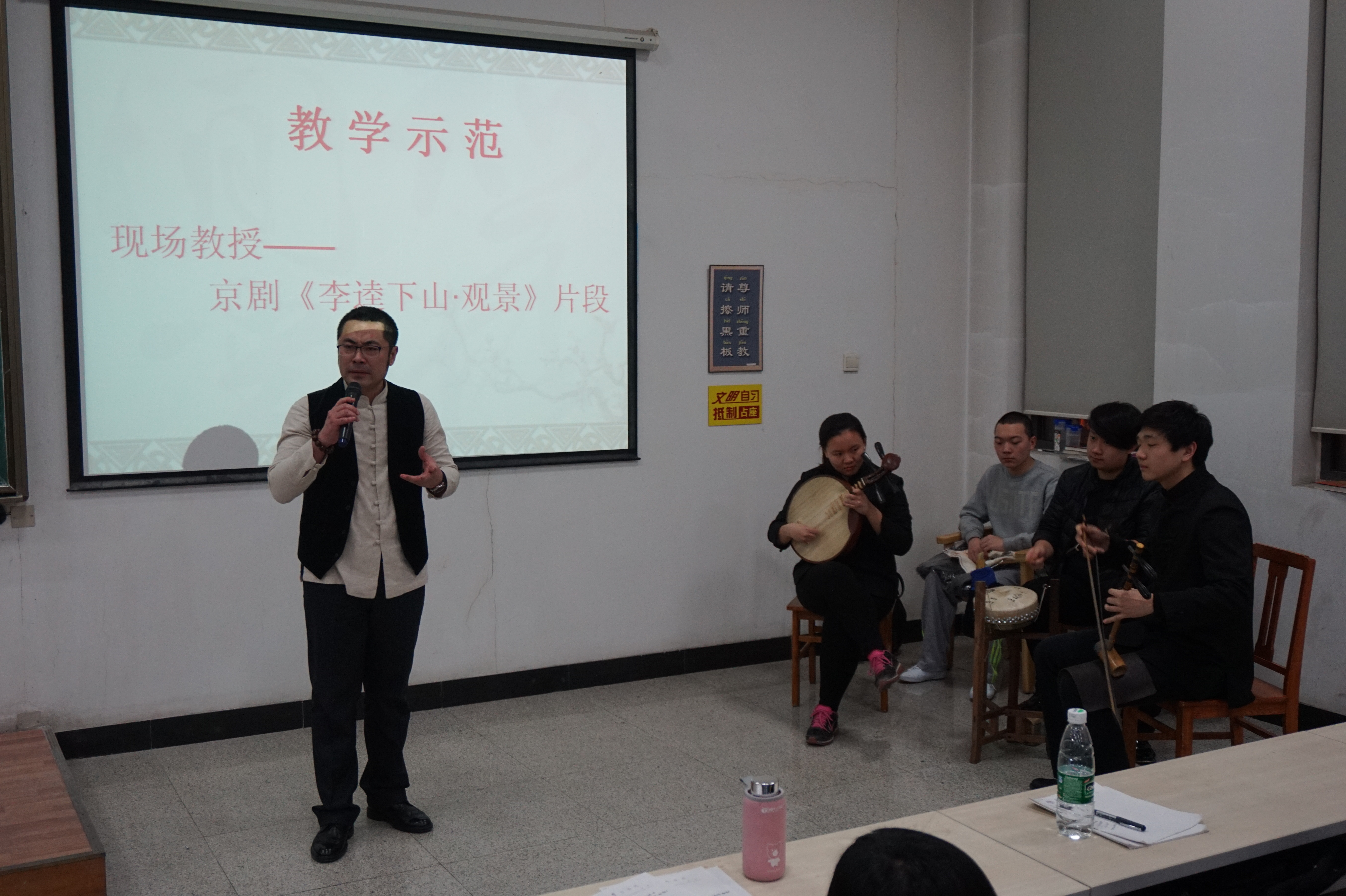 (通讯员:汲翔)2015年3月17日晚,二主楼B102教室座无虚席、锣鼓铿锵,研究生学术周末“动静相宜真性情,浓墨重彩绘人生”吸引了200多名同学的参与。此次学术周末以弘扬国粹京剧艺术为主题,由PA视讯集团官网副教授刘佳主持,主讲人是天津艺术职业学院副经理、戏曲系主任王钦。