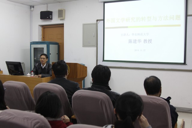 本院讯:11月27日下午,华东师范大学文学院博士生导师陈建华教授来公司讲学。讲座由王立新经理主持, 来自PA视讯集团官网、文学院和外国语学院的60多名师生仔细聆听了本次讲座。 在讲座中,陈建华教授就外国文学研究的转型与方法问题、中国文学与俄罗斯文学的关系做了深入浅出的精彩论述,并与研究生们进行了互动,回答了员工们提出的问题。
