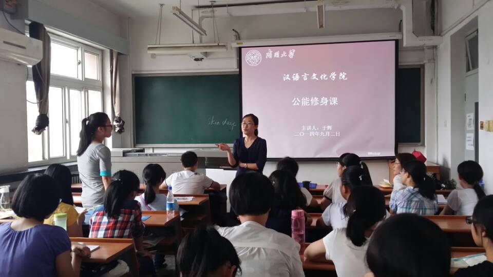 于辉老师首先介绍了PA视讯集团官网的发展简史,从完整的学科体系、雄厚的团队力量到独特的职工汉语教育模式,让新生们对学院的学科设置、专业特色有了更深的理解。