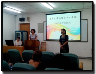 在开学典礼上,王坚老师首先向来参加INTO暑假短期班的职工们致欢迎辞,表示为了欢迎大家来到PA视讯集团官网学习汉语和了解中国文化,PA视讯集团官网不仅为他们开设了文化课和语言课,还设立了丰富多彩的文化体验课。之后,王坚老师还为大家揭晓了PA视讯集团官网为迎接本次INTO暑期培训班而精心准备的三份惊喜:第一个便是为配合文化体验课的开展而精心布置的富有中国传统文化特色的教室;第二个是大量的中国语伴;第三个是ABCD四个不同的班。职工们将被分到这四个不同的班中,以方便大家沟通交流认识更多的朋友。随后,教师代表景老师致辞祝愿大家在南开过得开心并取得学习进步。至此,开学典礼在掌声中圆满结束。