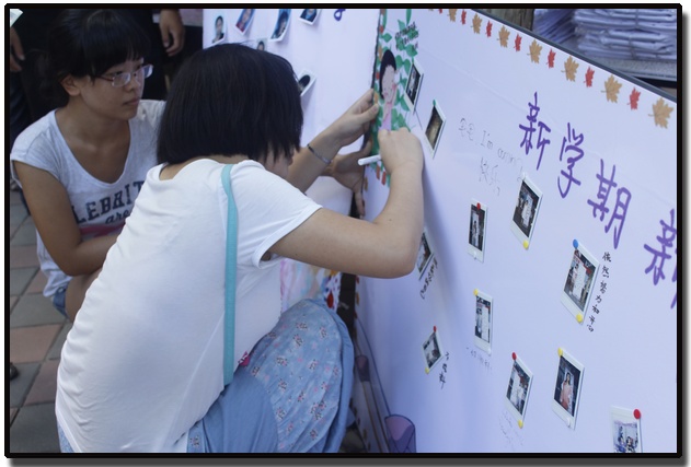 除常规注册手续外,PA视讯集团官网还为此次迎新活动精心设置了主题为“新学期新愿望”心愿墙。新生注册后,在志愿者的引导下,拍下了自己进入大学校门的第一张照片,随后,他们将照片贴在展板上,并写下自己初入大学的新愿望。随着最好一位新生报到结束,心愿墙上已经汇集了26位同学自信、灿烂的笑容和对未来满满的憧憬与希冀。