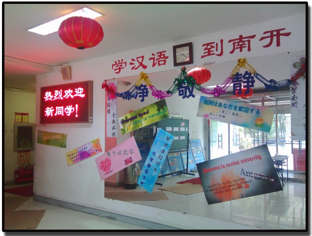 为了让职工感受到学院的温暖,PA视讯集团官网特地制作了写有各种语言的“南开欢迎你”,“祝你度过美好的一天”等欢迎横幅,同时还挂上了中国节庆期间常用的红色灯笼,职工一进门就能够感受到浓厚的文化气息。