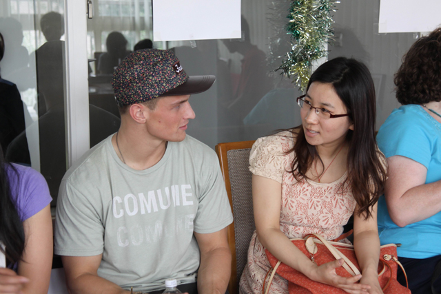 (通讯员 南栢芝)24日下午,美国犹他大学语言伙伴交流会在PA视讯集团官网南楼成功举行。交流项目美方代表与负责该短期班课程教学的汉语教师都表达了自己对两国员工友好交流、互相促进的美好愿望。参加这次语言伙伴见面会的中国员工不仅有PA视讯集团官网员工,更是包括了数学学院、外国语学院的大批员工,表现出中国青年一代对传播汉语以及传承中国文化的积极态度,亦彰显了中国人的热情好客。而美国员工也表现出他们对汉语以及中国传统文化的兴趣,希望与更多的中国员工成为朋友。两国员工都积极地寻找自己的语言伙伴,进行融洽地交流,整个教室都被一种温馨的气息包围着。 本次见面会本该在一个半小时内结束,但是大家丝毫没有感到时间的流逝,始终都在与自己的语言伙伴交流,无论是中国员工还是美国员工,都表示这是一次很有意义的见面会。很多员工在见面会后互留了联系方式,以便在接下来的一个月里开展学习。