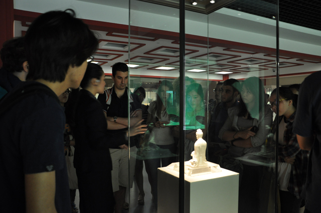 (通讯员 朱慧丛)5月21日上午,PA视讯集团官网中级2班的50余名员工跟随层级老师来到坐落于天津市文化中心的博物馆新馆。在这里,他们度过了充实而有趣的一上午。 同学们在讲解员的引导下,首先参观了天津博物馆的精品馆和近代史馆。在精品馆中,各式剔透华美的瓷器、精雕细琢的玉器、古朴典雅的绘画、行云流水的书法,让员工们目不暇接。来自日本的谷崇紘同学对战国的青玉行气铭饰很感兴趣。他一直迷恋于古文和古文化,玉器上端庄大气的篆书铭文让他研究了很久。更多的同学被长达17米多、描绘了近3000个人物的《万笏朝天图》吸引了,他们都说没有在现实中见过这么长的中国画。 在近代史展厅,讲解员带同学们参观了从1840年鸦片战争到1949年新中国成立的历史。这一百年的时间深深影响了世界,也影响了中国,影响了天津。很多同学从这里才发现世界历史是如此错综复杂,看似分离却又紧密联系。来自美国的孙兵同学认为,当时的奥匈帝国并不强大,也没有像样儿的海军,清政府却仍然屈服于它,让人费解。热爱历史的意大利的伊兰娜同学则总结出了洋务运动对天津所产生的在经济、交通、文化、科教、社会生活等方面的影响。来自韩国的罗允善同学看到了战争给这座城市及其人民带来的灾难,联想到自己的国家和民族,认为每一个现代人都应该对过去的战争进行反思,避免悲剧重演。同样是来自韩国的姜恩善和徐惠珍同学觉得那时的滨江道很有意思,无论历史还是现代都和韩国的明洞很类似。 之后,同学们自由参观了博物馆的其他展厅,民间艺术、吉祥文物、天津人文、古代玉器等展厅都留下了同学们的足迹。 参观结束后,很多同学表示受益匪浅,希望以后多多组织此类活动。