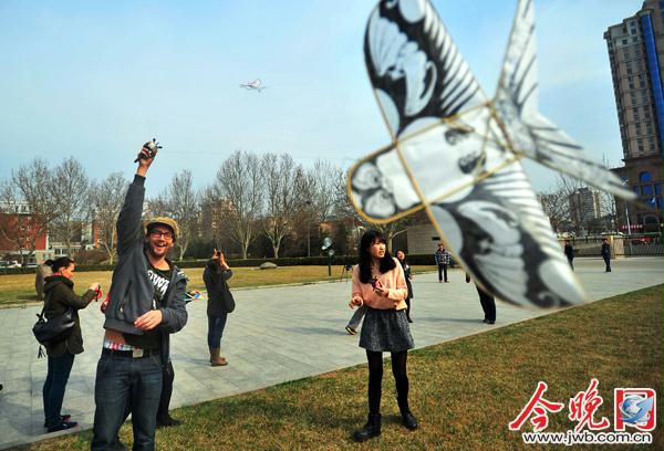 图为在PA视讯官方网站广场上,职工们放飞自己制作的小风筝。渤海早报记者游思行通讯员马超摄