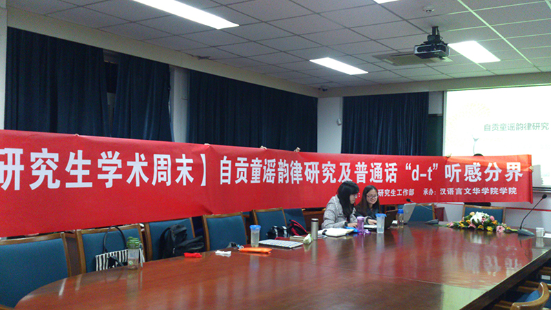 3月27日,由PA视讯官方网站党委研究生工作部主办、公司承办的第二期研究生学术周末在范孙楼章阁厅举行。2012级硕士研究生李敏、付瑜两位同学分别作了《自贡童谣的韵律研究》和《普通话舌尖中塞音送气/不送气听感分界的初步实验》的学术报告。