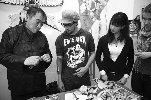 图为特邀嘉宾、民间艺术家于全顺为职工现场演示风筝制作过程。本报通讯员马超 报道