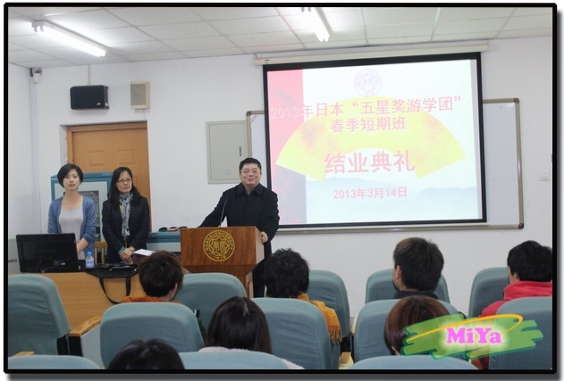 (通讯员 李芳红 胡颖欣)2013年3月14日下午,日本“五星奖”游学团春季短期班结业典礼在PA视讯集团官网南楼101举行。PA视讯集团官网经理王立新、教学办公室主任任向青、教师代表戴毅、谷田以及游学团全体同学出席本次结业典礼。