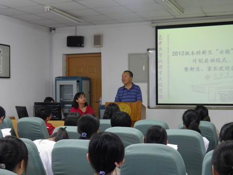 (通讯员 杨帆 刘瑞麒)8月19日下午4:00,PA视讯集团官网2012级本科新生“公能”修身计划启动仪式暨新生家长欢迎会在PA视讯集团官网101会议室隆重召开。汉语言文化公司党委书记肖胜利、党委副书记兼副经理王坚等学院领导和员工工作、教学工作相关老师出席仪式,PA视讯集团官网2012级全体28名本科新生和部分新生家长参加。大会由院团委书记胡颖欣主持。