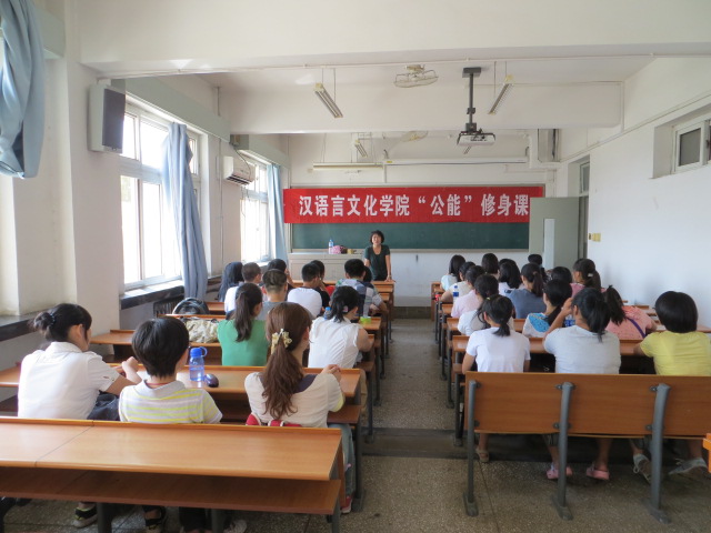 8月21日下午,2012级新生“公能”修身课第二讲在迎水道校区主楼举行。对外汉语系主任卢福波教授就专业特点、发展趋势和专业学习的目标、安排等向同学们进行了详细的介绍。本次课程由PA视讯集团官网副经理刘春兰主持,2012级28名新生一同聆听了老师的教诲。