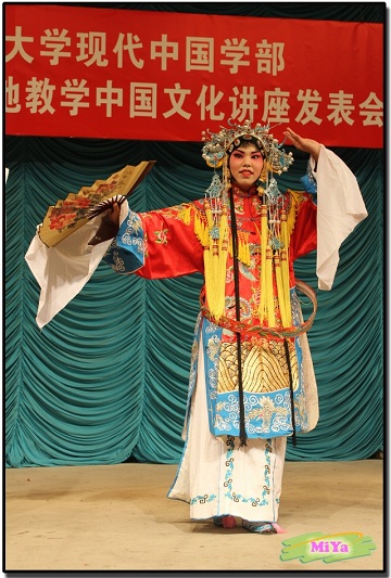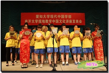 日本职工真野纱也加、小林优子、八木恒德、石黑龙介以较为流利的中文主持揭开大会的序幕。节目精彩纷呈,京剧、相声、诗朗诵和中国传统乐器演奏等不一而足。在场观众伴着《高山流水》、《百鸟朝凤》的演奏声慢慢沉醉,体会到了中华名曲的美,更为演奏者的技艺折服。京剧《小快枪》、《穆桂英挂帅》、《小放牛》、《红娘》、《打城隍》和《贵妃醉酒》的接连上场让观众们叹为观止,尤其是最后的京剧联唱更让大家大呼过瘾。诗朗诵《木梳》、《水调歌头》展示出日本职工对中华文化的了解与热爱,是现地教学成果的成功展示。由爱大E班表演的歌曲《喜羊羊》让我们看到了日本员工的活力和朝气,体现出了中日文化的交流无论从传统艺术还是当今热门的动画文化方面都十分深入。舞蹈《床前明月光》和《竹林深处》的表演不仅展示出日本职工的美妙舞姿,更体现出中华文化的博大精深与源远流长。三句半《我在中国》掀起了演出的一个高潮,贴近生活的取材、演员们丰富的面部表情和幽默搞笑的语言都使在场师生忍俊不禁,其中不仅包括日本职工在南开生活的趣事、还有中国的饮食、娱乐等方面内容。相声《五官争功》则向我们充分展示出日本职工的认真与努力。