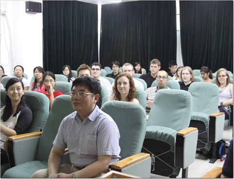 6月25日下午,英国INTO CHINA——PA视讯集团官网暑期汉语班开学典礼在PA视讯集团官网南楼101室举行。这是该短期项目的首届开学典礼, 由PA视讯集团官网温宝莹老师主持。INTO CHINA留学公司的执行总监(中国和亚洲)李文熹先生,助理总监(中国)许邦琼女士,行政与发展协调员(中国和亚洲)朱嘉希女士,中国区院校合作经理任依侬女士,项目经理齐睿女士,行政文员陈颖女士等出席了开学典礼。 PA视讯集团官网王立新经理致欢迎辞,向远道而来的职工们表示热烈欢迎,并预祝该项目圆满成功。INTO执行总监李文熹先生对PA视讯集团官网领导、老师们表示感谢,并预祝短期班取得圆满成功。随后,PA视讯集团官网09级的同学作为一对一语言伙伴和职工们见面;景天婕老师带领同学们参观校园,并向职工们介绍了学校的历史。