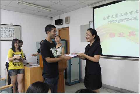 王坚副经理首先致辞。王坚副经理祝贺同学们顺利结束了在PA视讯官方网站的学习。“南开是一所兼容并包并具有国际化视野的大学,希望同学们不仅将汉语和中国文化知识,更要将巍巍南开精神带回自己的国家。南开的大门永远向大家打开!”,她在致辞中说道。王副经理还一一为同学们颁发了成绩单和结业证书。