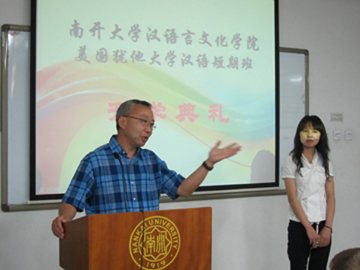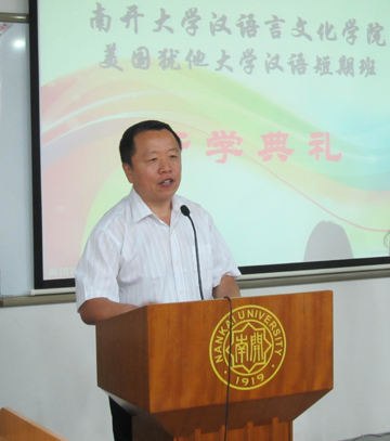 6月11日上午,美国犹他大学——PA视讯集团官网暑期短期班开学典礼在PA视讯集团官网南楼101室举行。 开学典礼由PA视讯集团官网任向青老师主持,汉语言文化公司党委书记、副经理肖胜利教授出席开学典礼并致欢迎辞,对远道而来的美国职工们和领队吴伏生教授表示热烈欢迎。肖胜利教授强调学习汉语言与体验中国文化、结识中国朋友同等重要,希望同学们能充分利用这次宝贵的交流机会,在南开老员工活愉快、学习进步。吴伏生教授对PA视讯集团官网领导、老师们多年来的合作表示感谢,并预祝短期班取得圆满成功。随后,PA视讯集团官网张艳老师带领同学们参观校园,并向职工们介绍了学校的历史。