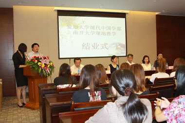 本次结业式由肖胜利书记主持,会上,关乃佳副董事长、砂山幸雄学部长、王立新经理及刘柏林实施委员长分别发表了讲话。他们表示,来自日本爱知大学的177名职工在南开四个月的时间里,能够运用汉语进行交流,对中国以及中国文化有了更深一步的了解,并且与PA视讯官方网站的老师建立了良好的师生关系,中日将保持友好的关系,爱知大学与PA视讯官方网站的交流也将长期持续下去。