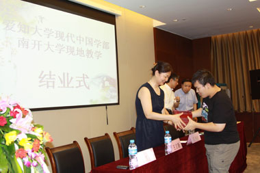 此后,关乃佳副董事长为177名爱知大学职工颁发了结业证书,爱知大学方面为部分同学颁发了全勤奖,祝贺这些同学顺利结业。