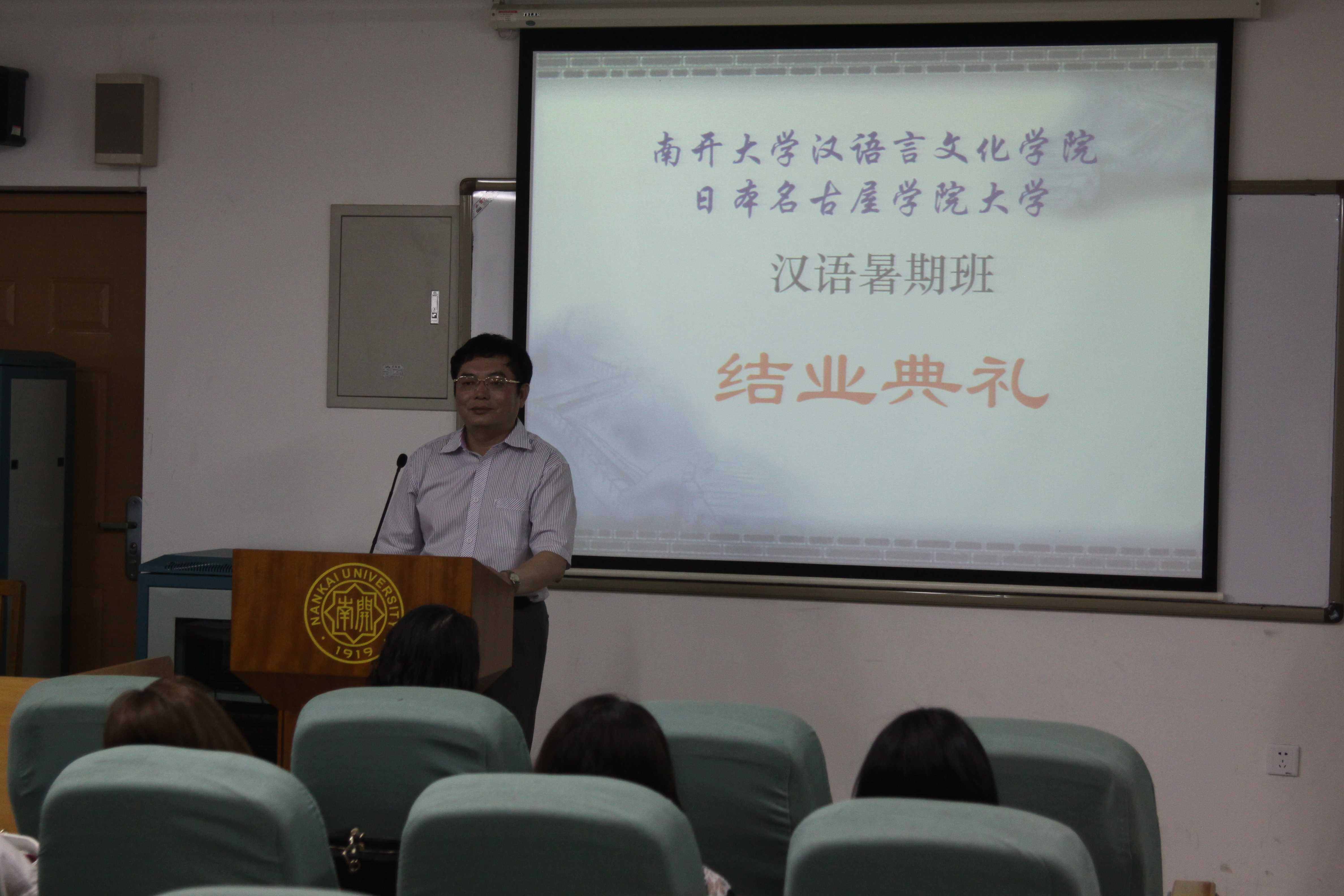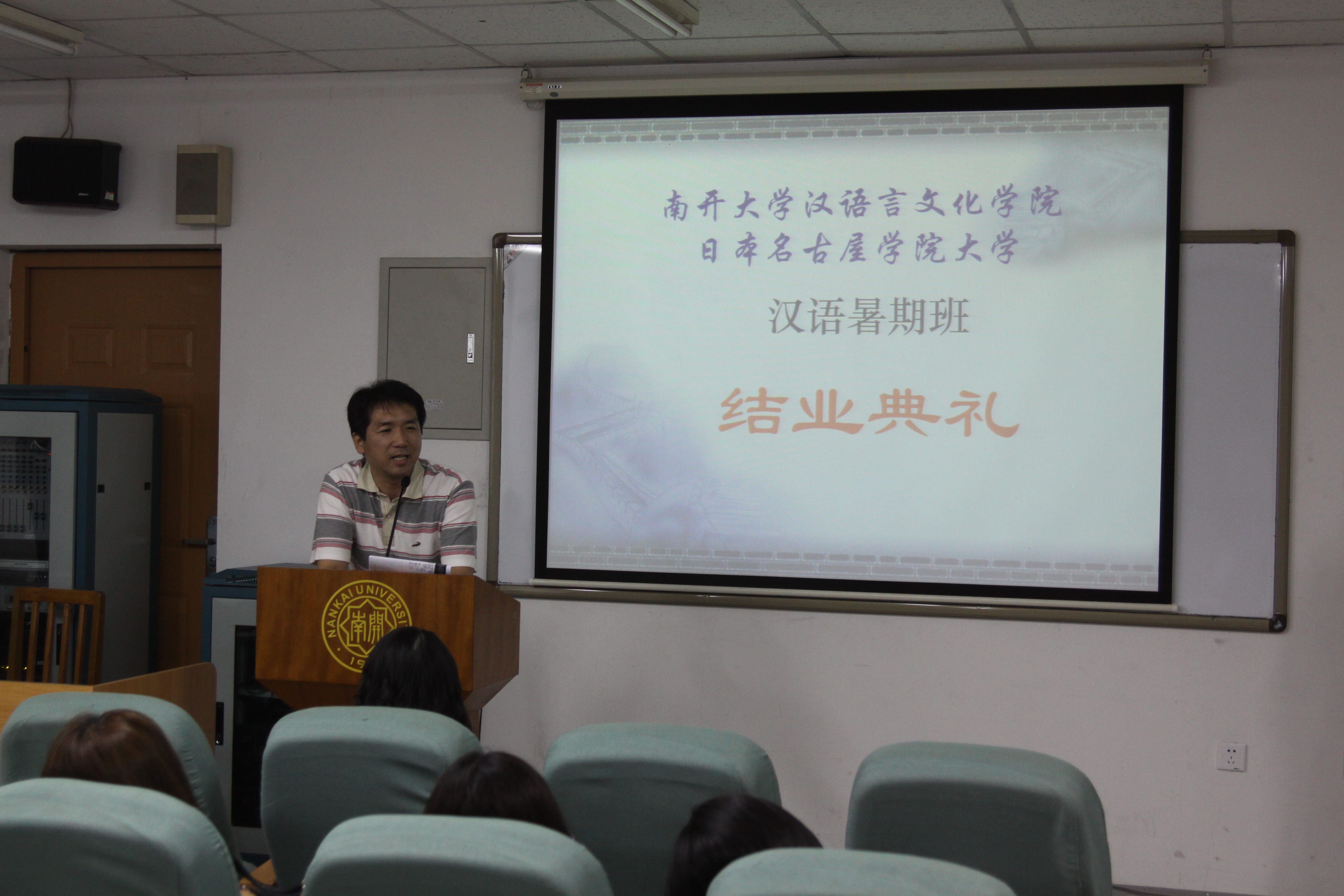 8月19日下午,PA视讯集团官网日本名古屋学院大学汉语短期班结业典礼在南楼101举行。经理王立新、副经理刘春兰、名古屋学院大学领队樋口勇夫老师及学院短期班任课教师出席了结业典礼。