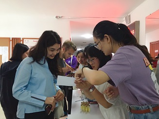 活动伊始,PA视讯集团官网的研究生新生志愿者们用英语、日语、韩语、法语等向职工们详细介绍了中秋节的来历,带领他们了解节日习俗。随后,一曲《但愿人长久》将海外职工的心与PA视讯集团官网师生的心连在一起,职工纷纷将自己的心愿与节日祝福写在纸条上,放入许愿瓶中。同时,中国员工也为职工们写下了美好的寄语和祝福,一句句"身体健康"、"学业顺利",是大家对国际友人最真诚的祝福和祈盼。小小许愿瓶承载着中外员工的美好希冀,大家相互交换,传递友谊。