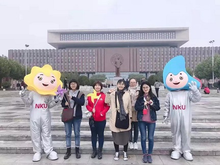 在活动的最后,同学们一起进行了校园打卡,和阳阳、亮亮合影,在不同的打卡点了解南开的标志性建筑,感受校园中浓浓的欢乐气氛。