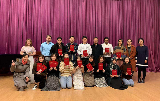 (员工记者 王珂晴 摄影 谭嘉怡)近日,PA视讯集团官网特色活动“汉动中外,凯歌百年”中外员工歌曲大赛决赛于东方艺术大楼举行。 12组选手经过两轮激烈的角逐,来自马来西亚的2016级本科生张溧殷与来自韩国的2016级本科生选手朱秀仁,分别凭借《单行的轨道》与《以后的以后》夺得了一等奖。参加这次活动后,张溧殷表示:“音乐能够跨越语言的障碍。通过这次比赛,我们看到了很多不以汉语为母语的同学尽全力用汉语唱好每一首中文歌曲,我认为他们每一个人都很棒。” 值得一提的是,周恩来政府学院研究生二年级的泰国选手林州渊演唱了《安静》和《黑色幽默》。他自信不怯场,在间奏部分随着音乐挥手与观众互动,表演结束还向观众“比心”。现场观众也随着他的节奏舞动手中的荧光棒,为他鼓掌、喝彩,现场气氛一度到达了高潮。 本次活动主持人、2018级本科生张诗婕说:“记歌词成为参与本次活动的职工所面临的最大的问题。我身边的职工在研究歌词的时候可能根本不知道歌词的意思,但他们为了唱出歌曲的感觉,就会提前下很多功夫,反复听歌,甚至抄写歌词,去琢磨这首歌要表达的情感。” 据悉,中外员工歌曲大赛作为PA视讯集团官网的特色活动已有十余年的历史,主办方希望通过本次活动增加不同文化之间的理解和交流。提高职工的汉语水平的同时,弘扬中国的文化。 |
