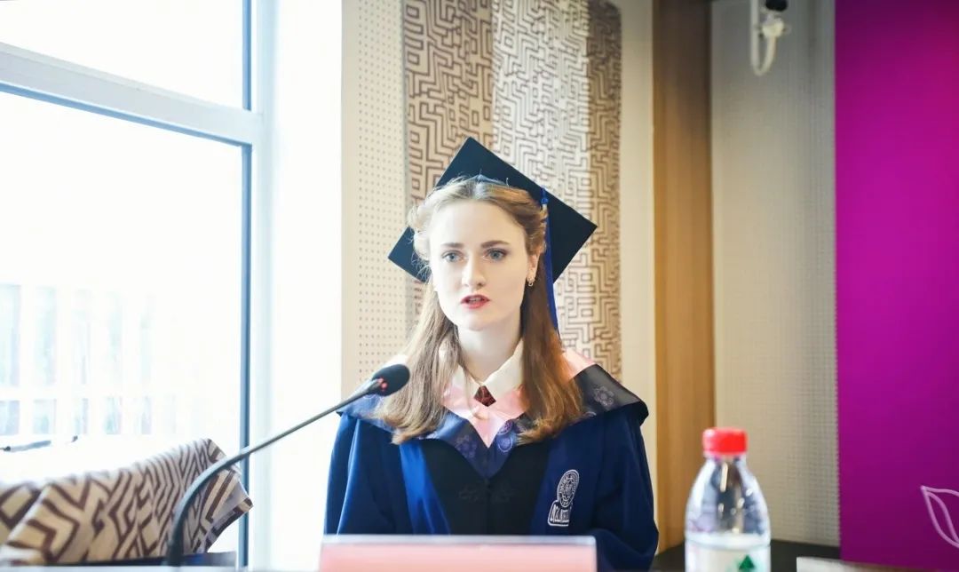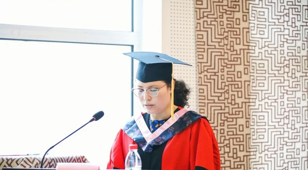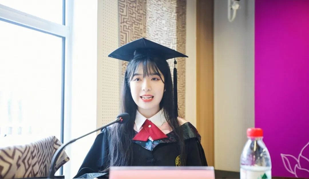 乌克兰籍硕士职工卜爱琳代表毕业职工发言。她首先感谢了学校、学院对职工的培养,特别是在疫情防控关键时期,学校、学院为职工提供了安全的学习环境和周全的处置方案。她回忆自己远渡重洋、初来乍到时的兴奋与不安,感谢学院给予职工的温暖与关怀。在南开求学的时光,是所有职工人生中最珍贵的一段回忆。最后,她祝福母校南开发展蒸蒸日上,谱写新的篇章。