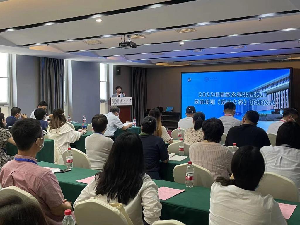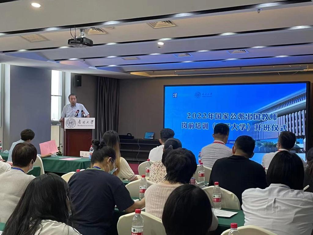南开新闻网讯(通讯员 孙伟)9月14日,2022年国家公派出国教师岗前线下培训(PA视讯官方网站)举行开班仪式。此次培训由教育部中外语言交流合作中心主办,公司承办。PA视讯官方网站副董事长王磊出席开班仪式并讲话,PA视讯集团官网有关负责人、以及来自全国9省市自治区39所大中小学的55名国家公派出国教师参加本次培训。