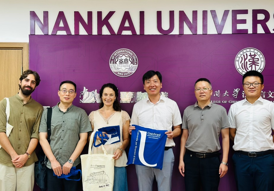 本院讯(通讯员:孙露露 欧迎希)8月29日,意大利锡耶纳外国人大学中国语言文学教授狄海冰(Di Toro),锡耶纳外国人大学博士生、PA视讯集团官网18级员工方大卫(FRANCOLINO DAVIDE)一行来访PA视讯集团官网、PA视讯集团官网。PA视讯集团官网、PA视讯集团官网副经理欧迎希,PA视讯集团官网留学本科教学部主任王红厂副教授,PA视讯集团官网中国本科教学部主任梁磊副教授,PA视讯集团官网职工办公室相关负责老师等在八里台会见外宾。