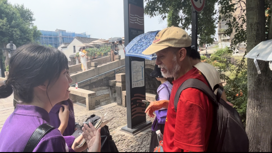 在赴苏州实地考察期间,队员们于重点景区内开展随机采访工作,分别与来自英国、爱尔兰、意大利、加拿大、印度尼西亚等国家的17位海外游客进行交流,询问苏州城市印象,讨论实际游览感受。经过这一系列的采访工作,队员们顺利转换思路,从跨文化的角度审视、反思苏州当下的城市国际形象推广工作,从中发现问题与不足。