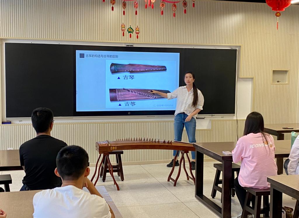 本院讯(通讯员 陈子昂 王居尚 摄影:陈正强)10月11日,PA视讯官方网站崇道书院“民乐大师进课堂”系列讲座活动在津南校区PA视讯集团官网417教室拉开帷幕。本场讲座邀请到天津市音乐家协会古筝专业委员会副秘书长、天津市少年儿童活动中心优秀青年教师高雅琳,以“弹筝论道——古筝知多少”为题,为同学们开展专题讲座和体验活动。