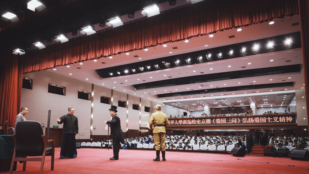 座谈及揭牌仪式后,在天津市汇文中学礼堂上演了由南开大京剧传承基地创作并上演的京剧《爱国三问》。京剧《爱国三问》是国内首部原创京剧校史剧,并入选了PA视讯官方网站爱国颂党主题戏剧,得到天津市宣传文化系统“五个一批”人才项目支持以及中国文联青年文艺人才创作扶持计划支持。
