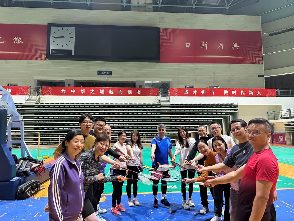 赛场上,轻盈的羽毛球在空中跳跃,每一次击球声,地板的摩擦声和老师们的笑声,像是一场盛大的交响乐。老师们瞬间作出的反应和判断,像魔术师一样变幻莫测……大家付出了汗水,收获了快乐、健康,释放了压力,增进了友谊。