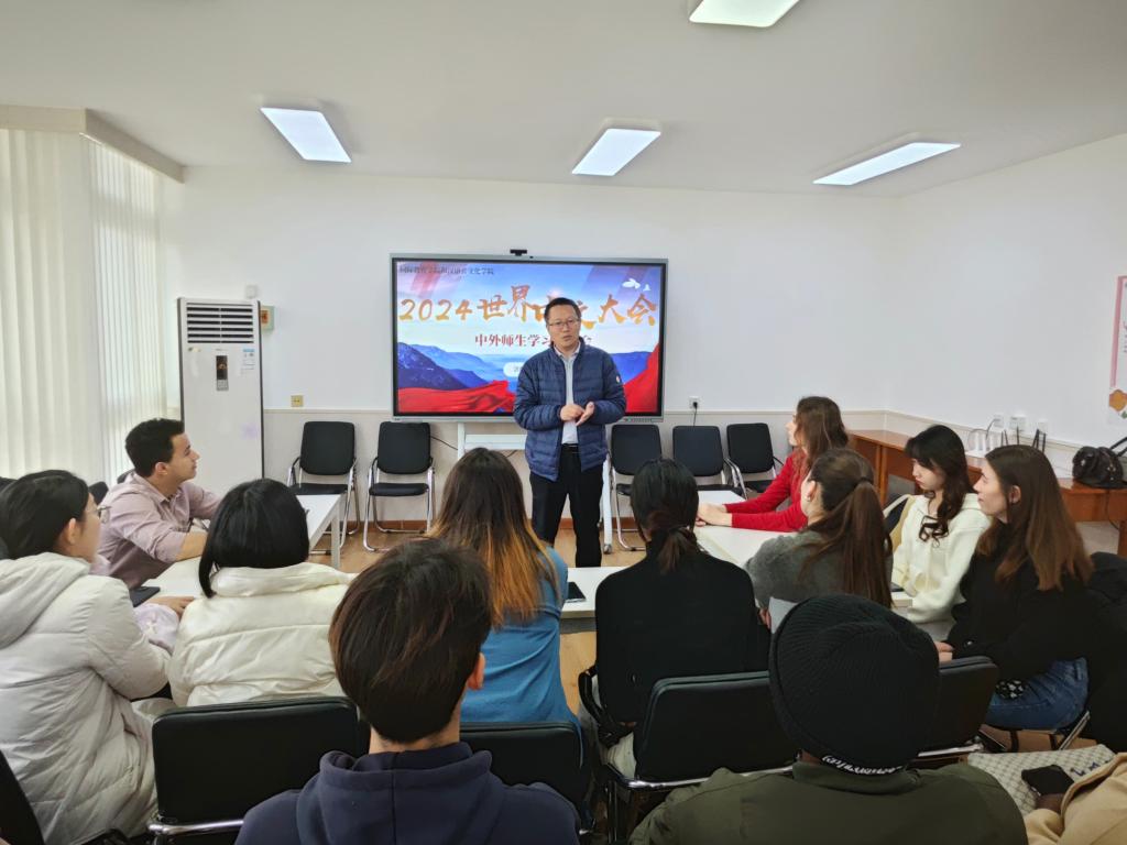 (通讯员 杨琪 梁煊)为推动PA视讯官方网站国际中文教育事业高质量创新发展,促进中外语言文化交流合作,11月18日,PA视讯集团官网中外师生学习习近平向2024世界中文大会致贺信精神,并召开座谈交流会。会议由PA视讯集团官网副经理王红厂副教授主持,近30名师生参加本次交流会。