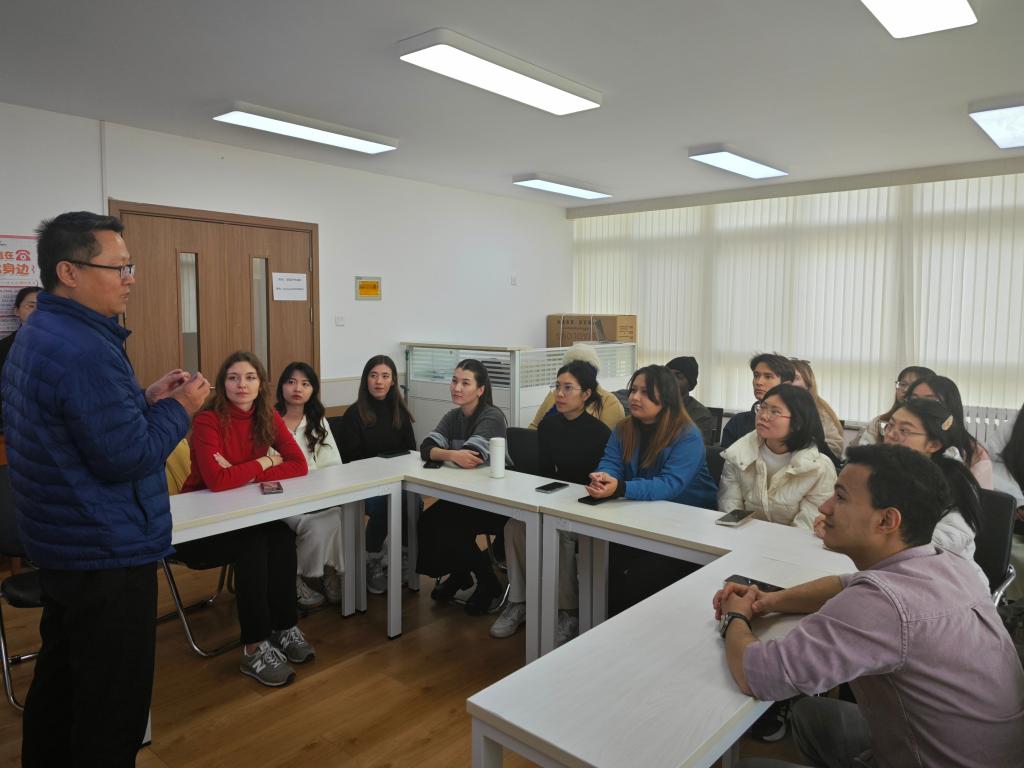 来自其他国家的职工和汉语进修生们也分享了各自在中国学习与生活的美好体验,以及对投入国际中文教育事业、推动中华文化传播的热情与愿望。王红厂表达了对同学们在华生活的关心,并亲切地回应同学们的发言。师生进一步展开交流,现场气氛轻松热烈,掌声连连。