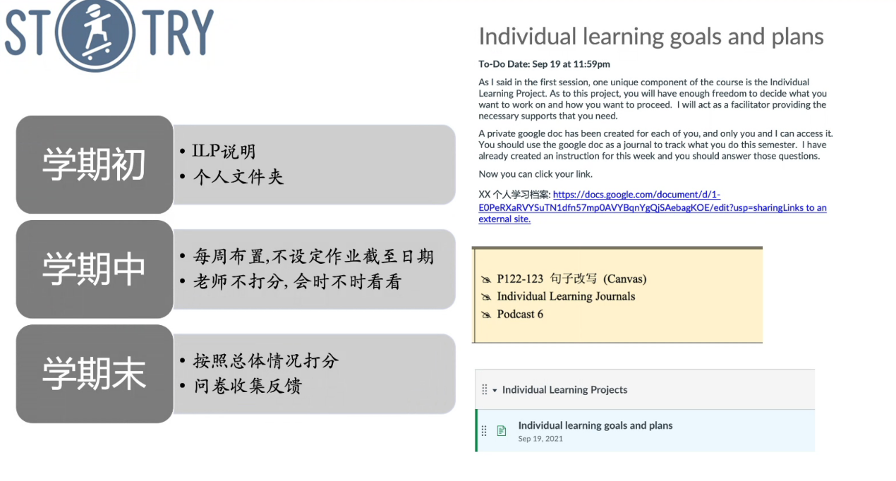 讲座第二部分,史中琦老师从应用性的角度出发,分享了自我决定理论,该理论认为人的基本心理需求包括胜任感、联系和自主性。满足其中任何一个需求,都能够增强员工的学习动机。在此基础上,史老师以自己教授高级商务中文课程的经历为例,详细介绍了他在课程中设置个性化学习项目(ILP)的实践过程。史老师通过让员工自主选择学习内容、自己设定目标,并在学期末根据员工的表现进行综合评分,满足了员工的自主性需求,增强了员工的学习动力。