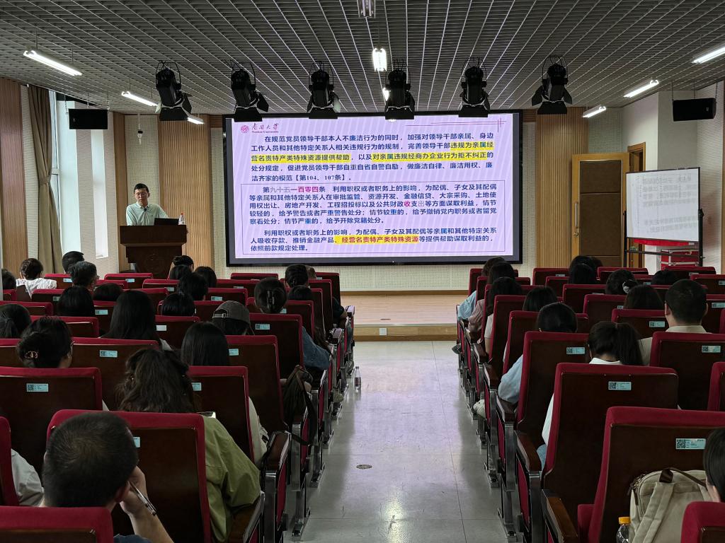 (通讯员 王居尚 袁芳)为进一步增强政治定力、纪律定力、道德定力、抵腐定力,确保党纪学习教育取得实实在在的成效,5月24日,公司党委邀请学校纪检监察机构综合业务室主任任子雄为学院全体师生党员开展党纪学习教育专题培训。公司党政领导班子全体成员、全院师生党员参加学习。